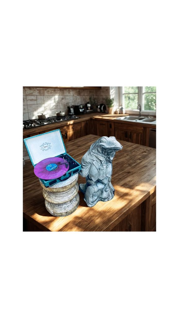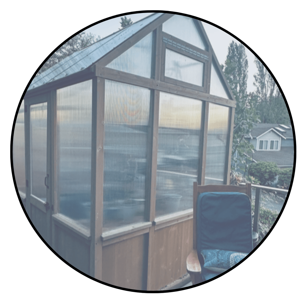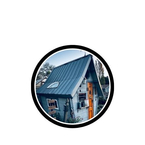 Hagrid’s Garden Hut Greenhouse sits tucked behind the fig tree and just beyond Hagrid’s Board Game Café – it’s a new addition to the garden. Moss creeps up its sides like a beloved old cardigan, and the windowpanes wear the gentle fog of the Pacific Northwest like a second skin. Inside, it smells of soil, thyme, and secrets, half nursery, half sanctuary. Rusty garden tools hang neatly beside twine-wrapped pots, and a few antique finds provide a touch of nostalgia. On the side, a small deck holds a rocking chair that creaks companionably when the wind blows, and the bird feeders sway with the gossip of chickadees and juncos. It’s a place where seedlings dream of spring, where gnomes occasionally nap under ferns, and where anyone – gardener, wanderer, or wizard at heart – might linger a little too long, just to listen to the rain on the glass.