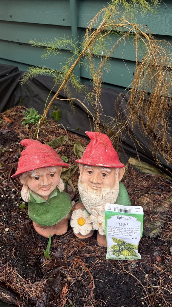 The morning began the way all sensible garden mornings should: with dirt under my nails, coffee in my hand, and two opinionated garden gnomes arguing in the VegTrug.